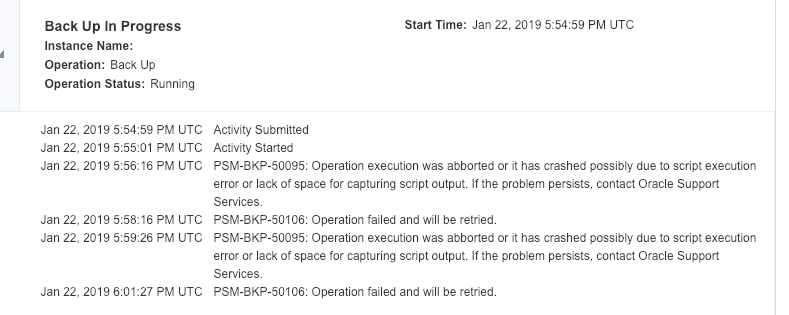 OAC Backups Failing