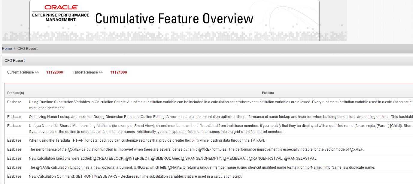 « Oracle Tool for Comparison of EPM Versions