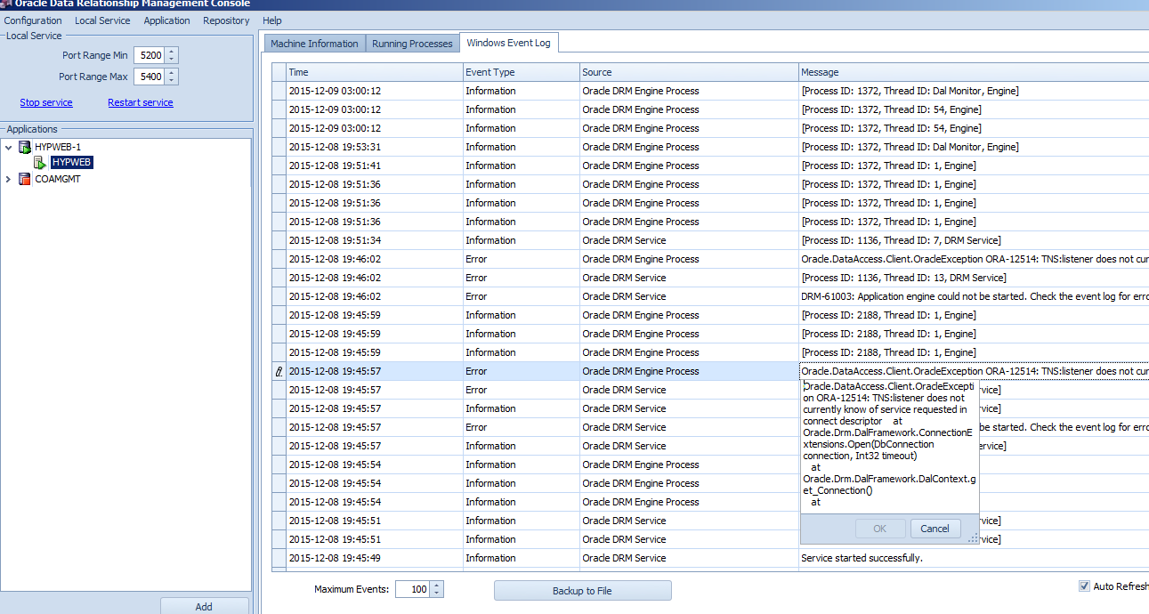 « Oracle DRM Application Not Starting (DRM-61003 and ORA-12514 errors)